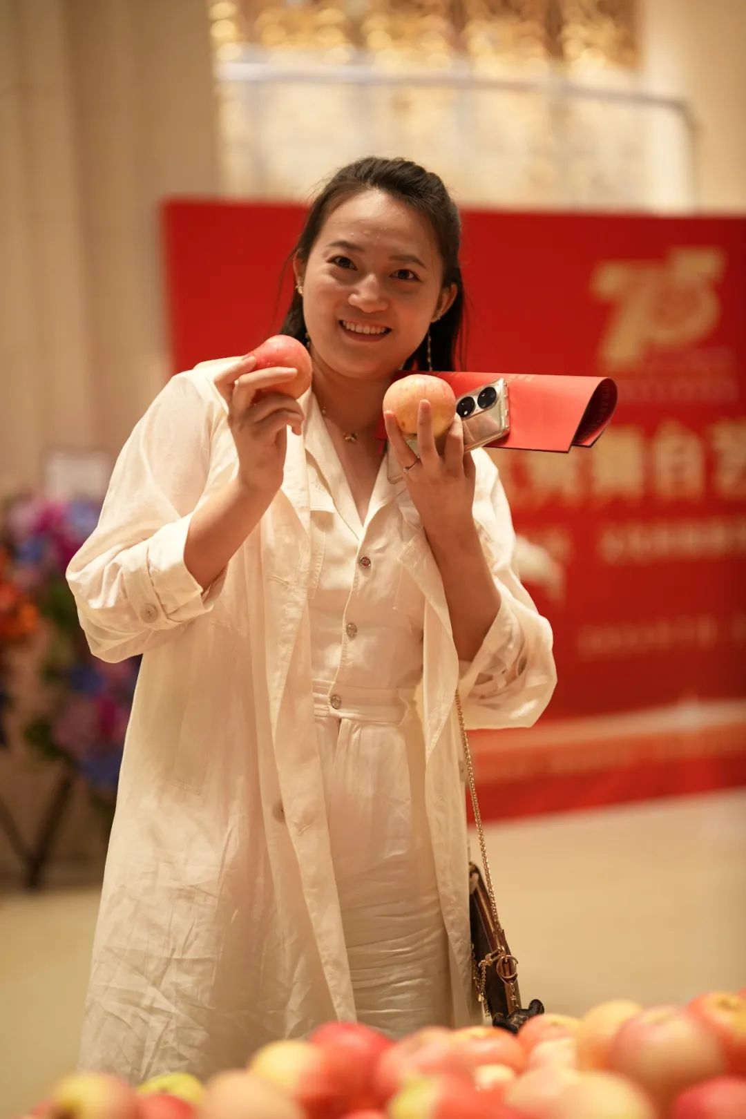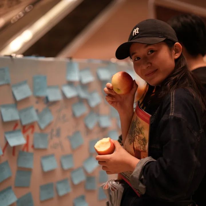 演出結束后,觀眾在劇場門口驚喜地領取到陜西蘋果。出品方溫馨提示:請您帶走一個蘋果,帶走溫暖的味道。